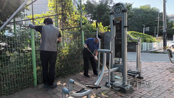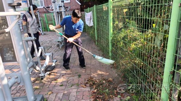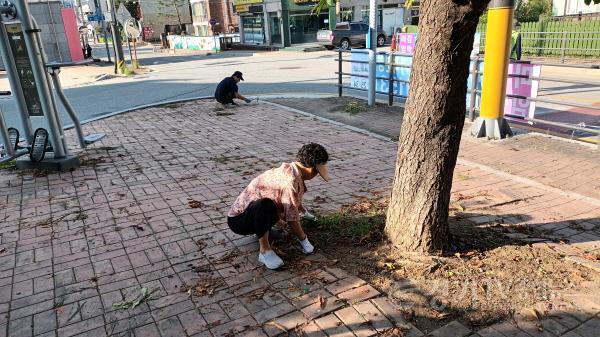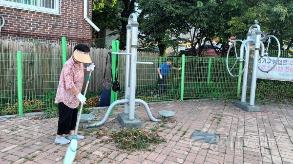 이날 캠페인행사에는 과자봉지,담배꽁초 각종쓰레기를 줍고 보도블록 사이에 작은 풀들이 소복히 올라온 잡초를 호미로 일일이 제거하고 마로니아 나무에서 떨어진 열매와 나뭇잎들은 비자루로 쓸고 쾌적한 환경속에서 운동기구를 탈수있게 작업을 실시 하였다.