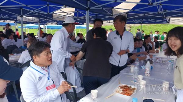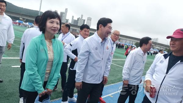 이른 아침부터 행사장에 도착한 이 시장은 1시간 가량 12개 읍·면·동 선수단을 방문해 일일이 악수하며 인사하고, 쇄도하는 사진촬영 요청에도 응했다.