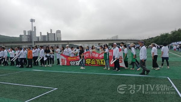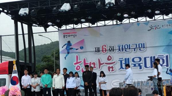 용인특례시 처인구민의 단결과 단합을 위한 체육행사가 6년 만에 용인시 삼가동 미르스타디움 보조경기장에서 이상일 용인특례시장 등이 참석한 가운데 16일 열렸다.