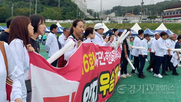12개 읍·면·동 2000여 명의 선수단은 이날 축구와 족구, 피구, 단체줄넘기, 400m 이어달리기 등 종목별로 우애를 다지고 친선을 도모하는 경기를 펼쳤다. 경기는 토너먼트 방식으로 진행돼 종목별로 1, 2위와 공동 3위(2개 읍·면·동) 등을 가렸다.