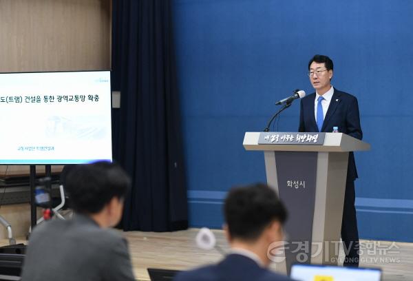 정명근 화성시장은 18일 시청 대회의실에서 실시된 시정브리핑에서 동탄트램으로 동탄신도시 광역교통망을 완성하겠다는 포부를 밝혔다.