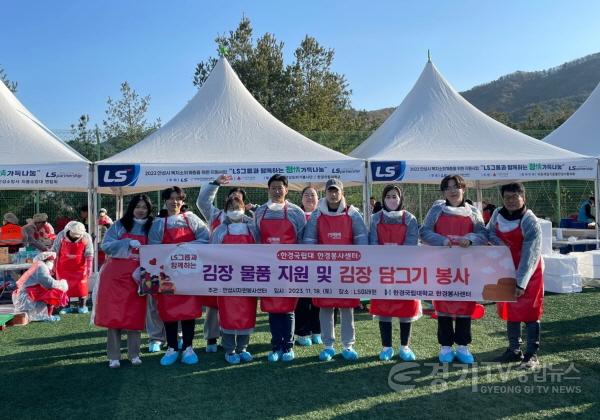 안성시자원봉사센터 주관, LS그룹 주최로 진행된 이번 행사에서 한경국립대는 김장 봉사활동에 필요한 고무장갑, 속장갑, 손소독 물티슈, 우의, 위생모자, 위생덧신 등 230만원 상당의 물품을 지원했다.