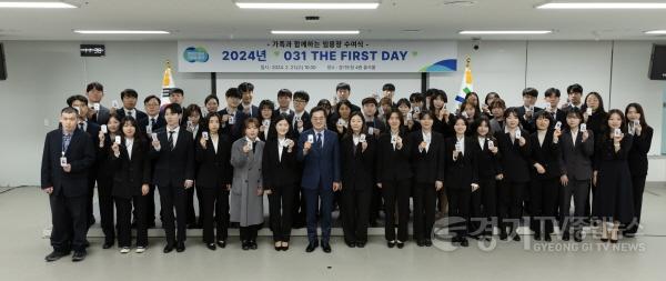 기사입력 2024.02.21 19:51경기도는 21일 경기도청 광교청사에서 신규 공무원 47명에게 임용장을 전달하고 공직입문을 축하하는 ‘031 The FIRST DAY(031 첫날)’ 행사를 열었다.