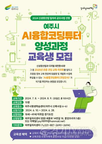 ![[크기변환]01-여주시 AI융합코딩튜터양성과정분야 교육생 모집 실시- 포스터).jpg](http://www.gyeonggitv.com/data/editor/2406/20240610122728_5800925953a8fa3ef2ea43ededab1157_baqo.jpg)