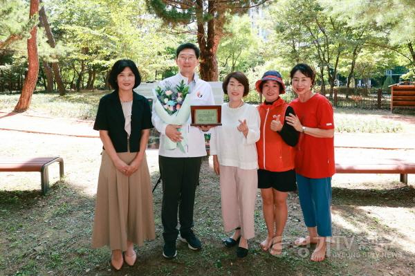 이날 동백3동 6개 단체 관계자들과 주민들은 이 시장에게 감사패를 주며 경관녹지 정비에 대한 감사의 뜻을 표했다.