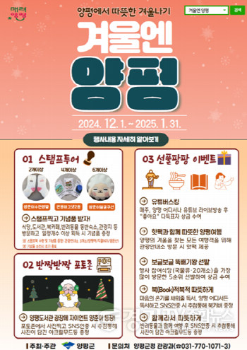 이세규 관광과장은 “이번 축제는 겨울철에도 관광객들이 가볍게 방문해 즐길 수 있는 행사로, 사계절 내내 관광이 가능한 양평의 매력을 널리 알리는 계기가 될 것”이라고 전했다.