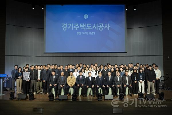 경기주택도시공사(GH)는 광교 사옥 이전 후 첫 창립일(12월1일)을 앞두고 29일 본사 대강당에서 김세용 사장 등 임직원, 경기도 등 유관기관 관계자, 지역주민들이 참석한 가운데 공사 창립 27주년 기념식을 열었다. GH는 광교 신도시, 판교 테크노밸리, 다산 신도시 등 공사 발전의 디딤돌이됐던 주요 성공사업을 소개하는 오프닝 세리머니를 통해 성장과 혁신의 27년여정을 공유하고, ‘사람이 행복한, 살기 좋은 경기도’를 만들어 가는 ‘백년기업’ GH가 될 것을 다짐했다.