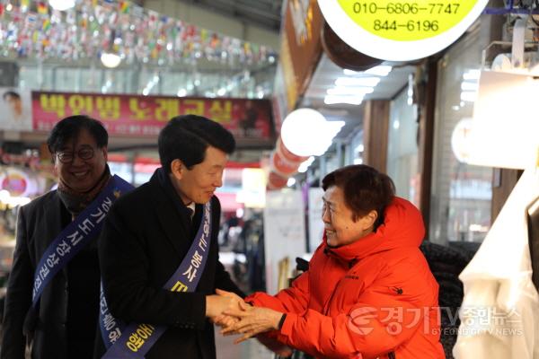 간담회에 이어 설 명절을 맞아 의정부제일시장을 방문하여 곳곳을 돌며 경기침체 등 매출 감소로 어려움을 겪고 있는 전통시장 상인들을 격려하고 경기도 탄소중립 홍보를 위한 친환경 장바구니 전달과 함께 장보기를 진행했다.