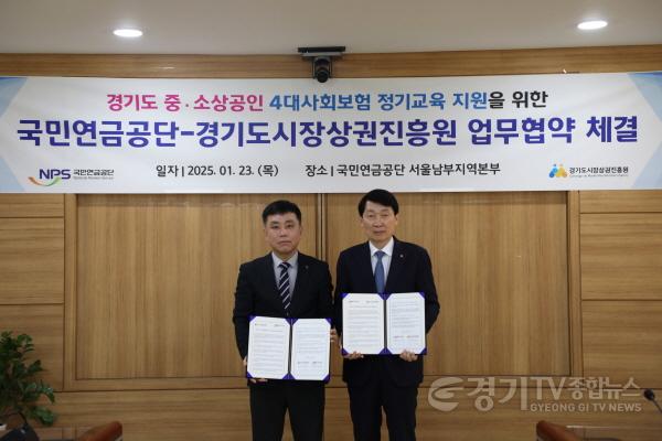 경기도시장상권진흥원(이하 경상원)은 23일 오후 국민연금공단 서울남부지역본부 대회의실에서 경기도 내 소상공인을 대상으로 4대 사회보험 교육 정례화를 위한 국민연금공단과의 업무협약을 체결했다고 밝혔다.
