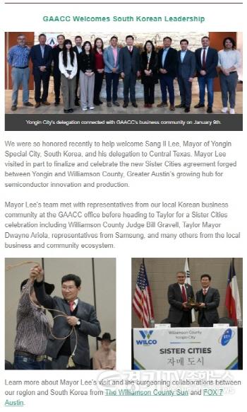 ‘광역오스틴 아시안상공회의소’, 주간 뉴스레터에 용인의 국제교류 활동과 미국 현지 매체의 기사 소개 -