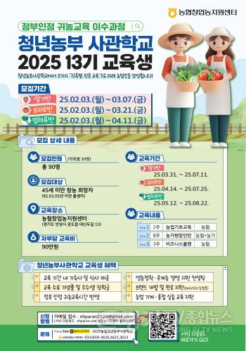 [경기티비종합뉴스] 농협중앙회, 농협청년농부사관학교, 2025년 교육생 모집