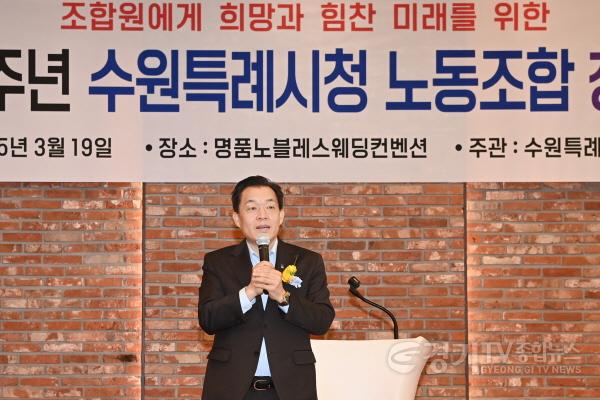 이재준 수원시장이 제29회 수원특례시청노동조합(환경관리원) 창립기념식에 참석해 “환경관리원이 더 존중받고, 노고에 걸맞은 대우를 받을 수 있도록 세심하게 신경 쓰겠다”고 말했다.